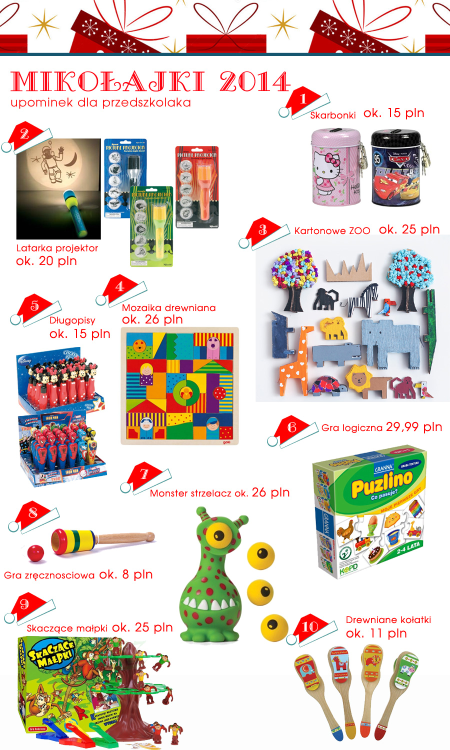 Pomocne zestawienie dla wychowawców przedszkolnych i Rad Rodziców, które właśnie podejmują decyzje co ma się znaleźć w mikołajkowej paczce ich pociech.